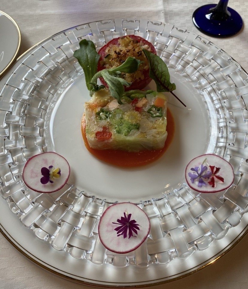夕食は、蓼科の土と水が育てた、新鮮な野菜たちが主役のコース料理でした。 ダイニングに流れるのは、静かなカトラリーの音と、控えめな話し声だけ。一皿一皿が、驚くほど丁寧に、かつ鮮やかに盛り付けられています。